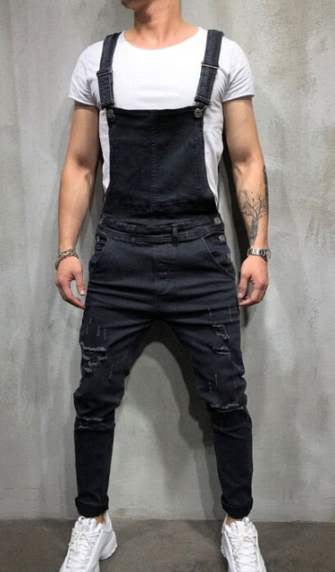 Fashion Men's Ripped Jeans Jumpsuits Hi Street Distressed Denim Bib Overalls For Man Suspender Pants Size S-XXXL
