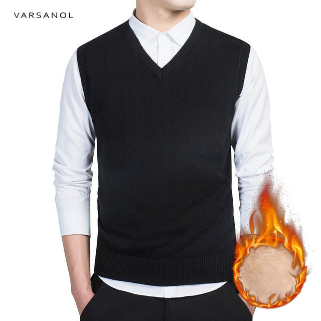 Varsanol Brand Clothing Pullover Sweater Men Autumn V Neck Slim Vest Sweaters Sleeveless Men's Warm Sweater Cotton Casual M-3xl