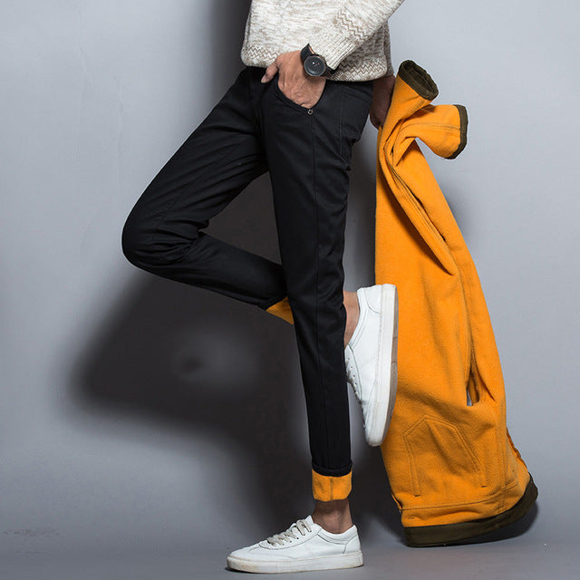 Men's Brand Jeans Classic Style Autumn Winter Business Casual Dark Blue Elastic Straight Denim Trousers Male High Quality Pants