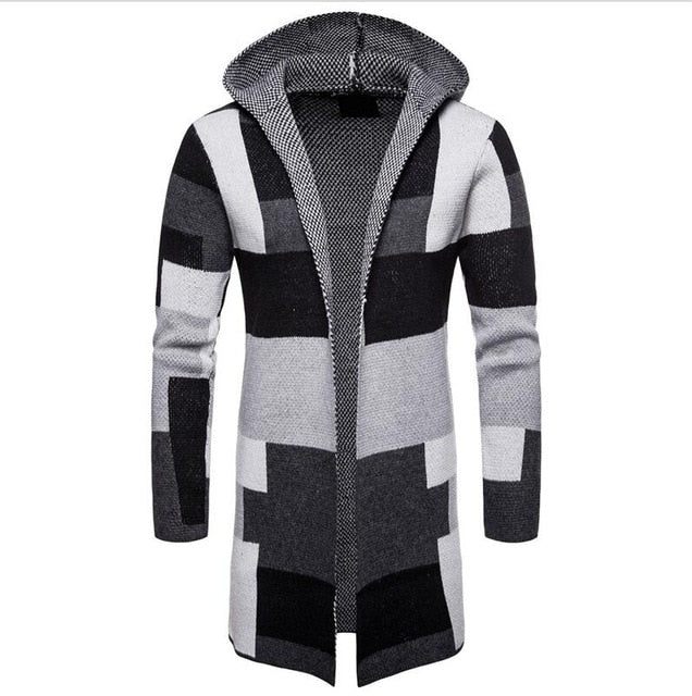 Men striped Cardigan Coat Sweaters Hooded Cloak Long Windbreaker Cloak Coat Knitted Sweater Big Size 5XL Cardigans Outerwear