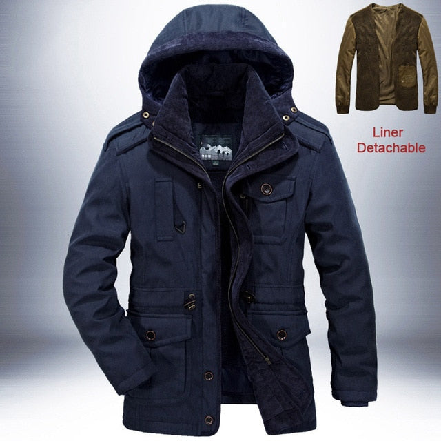 Brand Winter Jacket Men Thick Warm Windbreaker Mens Parkas High Quality Cashmere Liner Detachable 2 in 1 Coat Plus Size L-4XL